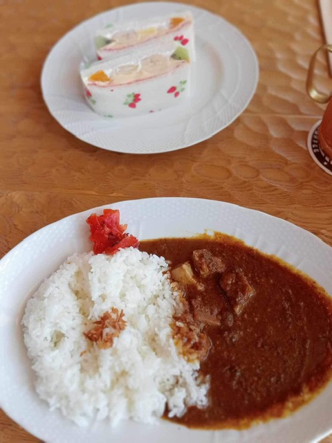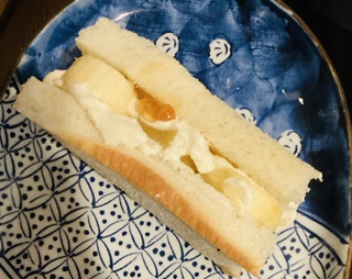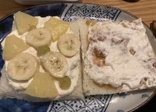 そこで注文したのはフルーツサンド。写真では、フルーツサンドよりも夫が注文したビーフカレーがめだってますが。笑 とっても美味しかったので、子どもにも食べさせてあげたいなぁと思い、本日おうちでフルーツサンドを作ってみました。